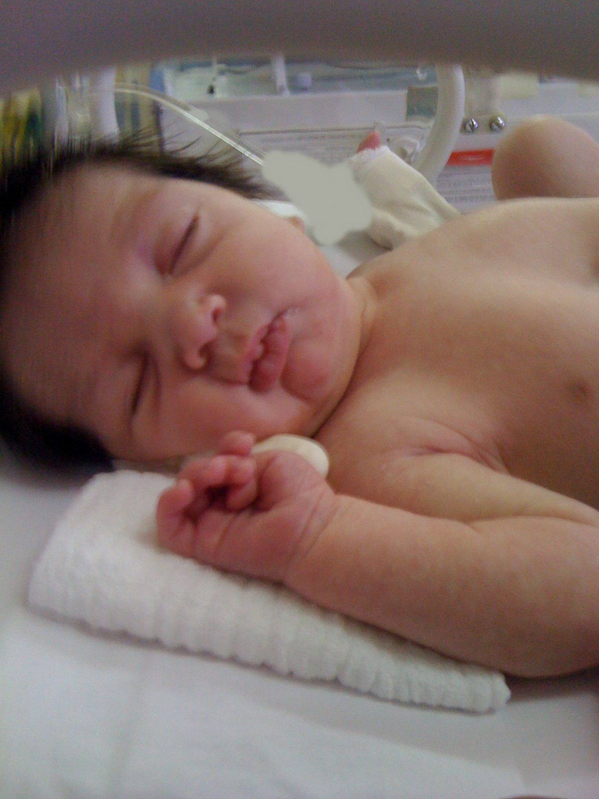 Voltando a história de seu pós nascimento, o Breno teve que ficar internado na UTI Neonatal, durante 19 dias, devido a pneumonia congenita. De inicio, ficaria 8 dias, porque o antibiótico teria que ser por vias intravenosas. A nossa agonia se extendeu por mais alguns dias, porque o antibiótico não combateu a bactéria e teve que ser ministrado outro tipo de medicamento.